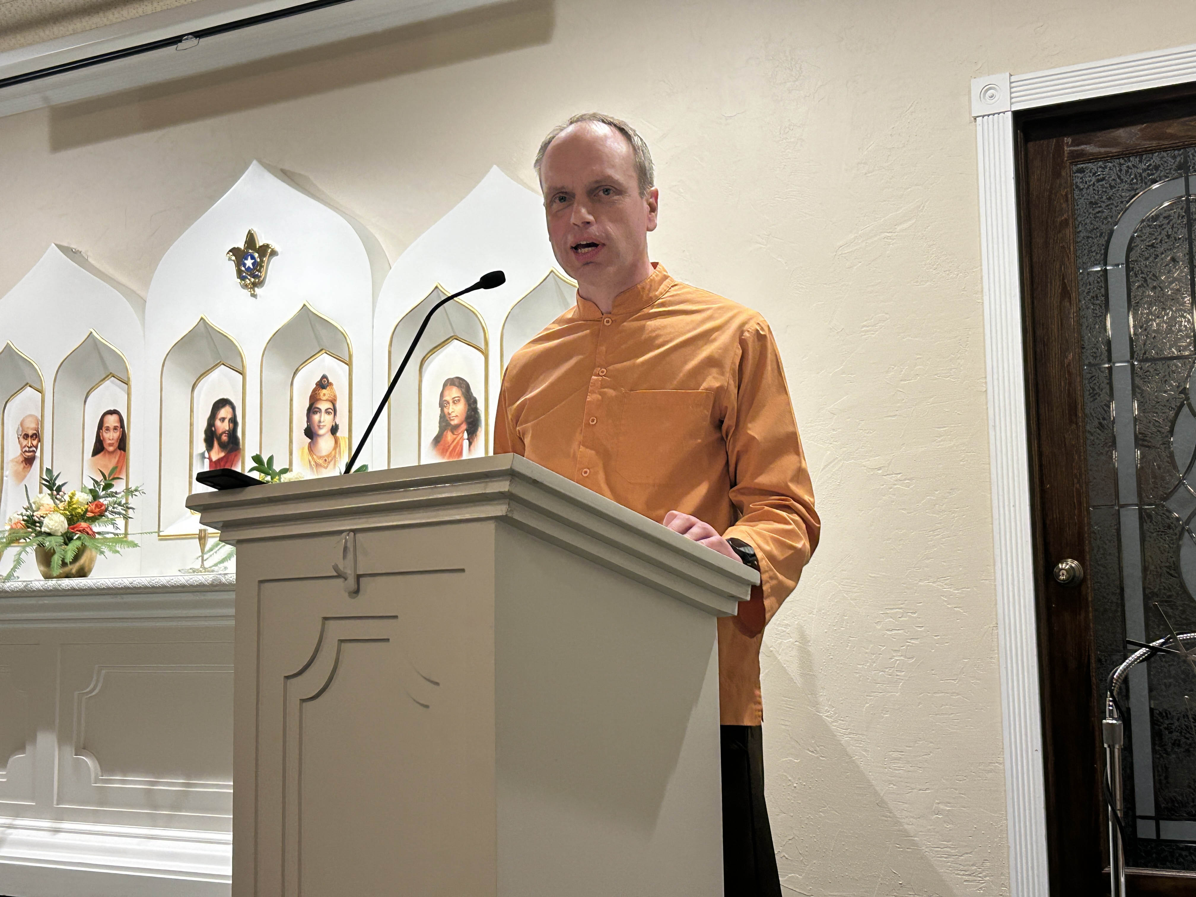 Brother Ritananda leading the Sunday service, March 17, 2024.