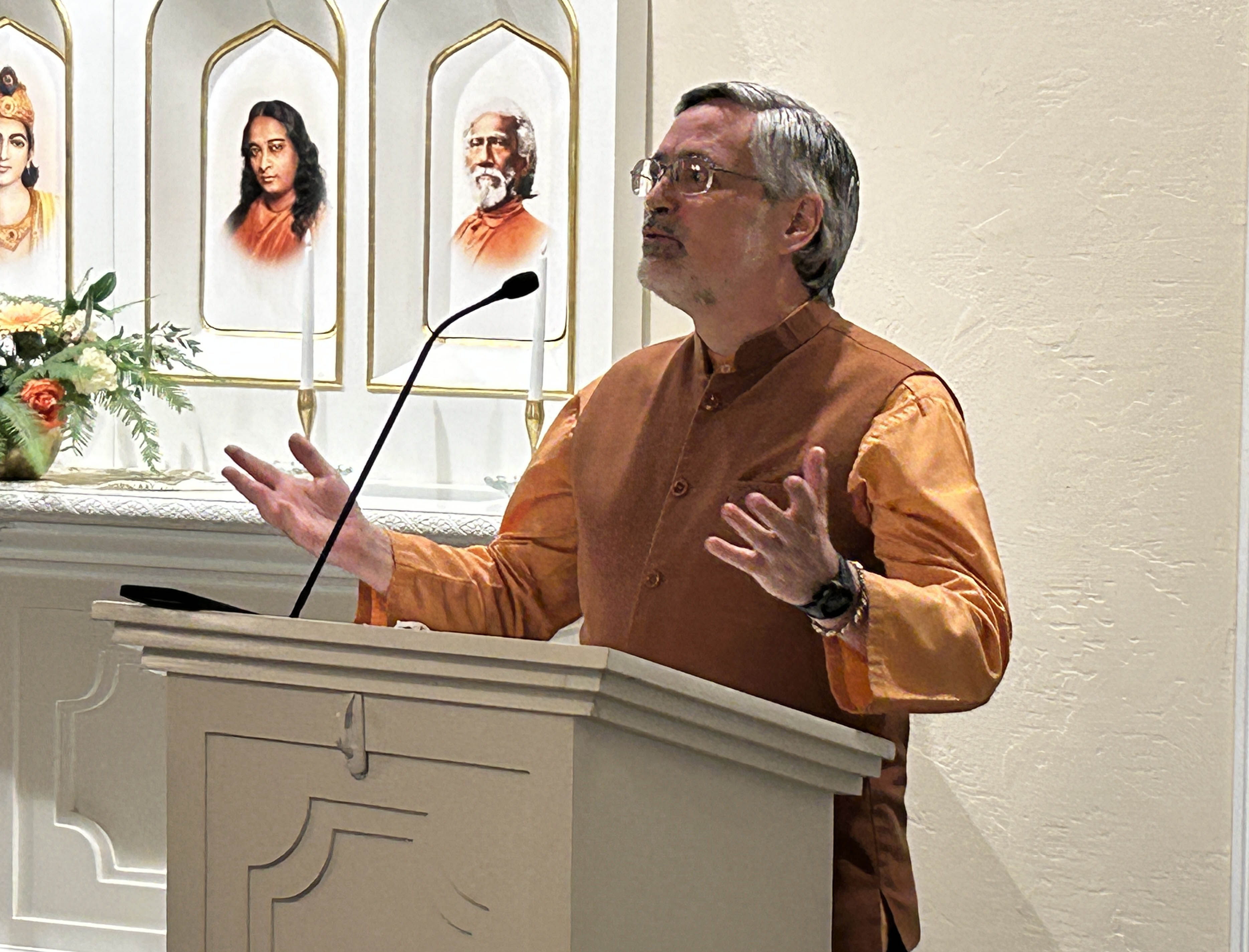 Brother Ritananda leading the Sunday service, March 17, 2024.
